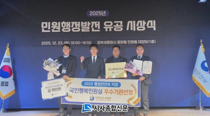 [½Ã»çÁ¾ÇսŹ® = ¿À½ÂÅà ±âÀÚ] Àü¶ó³²µµ±³À°Ã»Àº 12¿ù 23ÀÏ Á¤ºÎ¼¼Á¾Ã»»ç ¹Î¿øµ¿ ´ë°­´ç¿¡¼­ ¿­¸° ¡®±¹¹ÎÇູ¹Î¿ø½Ç¡¯ ÀçÀÎÁõ ½Ã»ó½Ä¿¡ ¹Î¿ø¾÷¹« °ü°èÀÚµéÀÌ Âü¼®ÇÑ °¡¿îµ¥, ÇàÁ¤¾ÈÀüºÎ Àå°ü ǥâ°ú ÀÎÁõÇöÆÇÀ» ¼ö¿©¹Þ¾Ò´Ù.