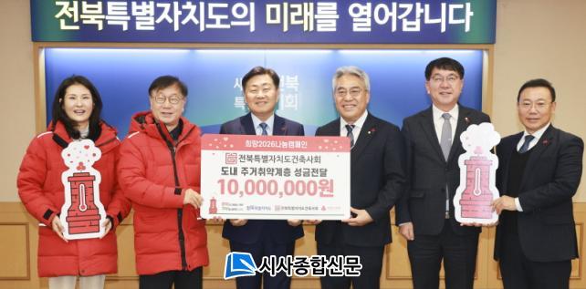 ÀüºÏÀÚÄ¡µµ´Â 24ÀÏ µµÃ» ȸÀǽǿ¡¼ ÀüºÏƯº°ÀÚÄ¡µµ °ÇÃà»çȸ(ȸÀå À̼º¿)°¡ »çȸº¹Áö°øµ¿¸ð±Ýȸ¿¡ ÀÌ¿ô»ç¶û ¼º±Ý 1,000¸¸ ¿øÀ» Àü´ÞÇß´Ù°í ¹àÇû´Ù. À̹ø ¼º±ÝÀº »çȸº¹Áö°øµ¿¸ð±Ýȸ¸¦ ÅëÇØ µµ³» Ãë¾à°èÃþÀÇ °Ü¿ïö ³¹æºñ¿Í »ý°è Áö¿ø, ¸ÂÃãÇü º¹Áö ÇÁ·Î±×·¥ µî¿¡ ¾²ÀÏ ¿¹Á¤ÀÌ´Ù.