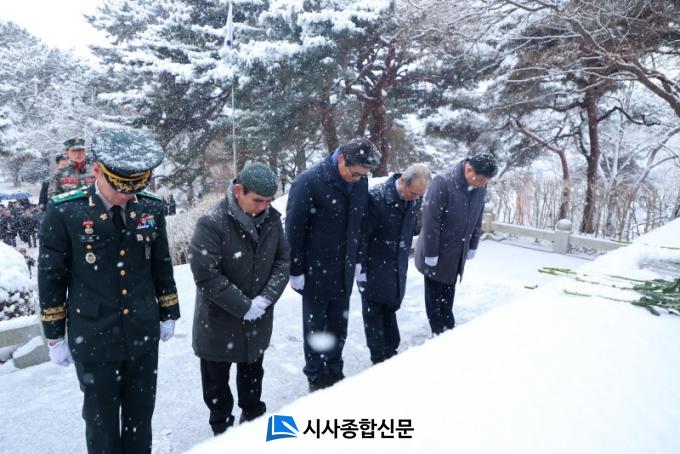 ¿ì½ÂÈñ ¿µ¾Ï±º¼ö¸¦ Æ÷ÇÔÇÑ °øÁ÷ÀÚ¿Í º¸ÈÆ´ÜüÀå, ±â°ü¡¤»çȸ´ÜüÀå µîÀº À̳¯ ¼ø±¹¼±¿°ú È£±¹¿µ·ÉÀÇ ³ÌÀ» ±â¸®°í, Èñ»ýÁ¤½ÅÀ» µÇ»õ±â´Â ½Ã°£À¸·Î ¿ÃÇØÀÇ ¹®À» ¿¾ú´Ù. ¾Æ¿ï·¯ »õÇØ¿¡µµ ±¹°¡À¯°øÀÚ¿Í º¸Èư¡Á·¿¡ ´ëÇÑ ¿¹¿ì¸¦ °ÈÇϰí, ¿µ¾Ï±º¹Î°ú Áö¿ª»çȸ¸¦ ¸¸µé¾î °£´Ù´Â °¢¿À¸¦ ´ÙÁ³´Ù.