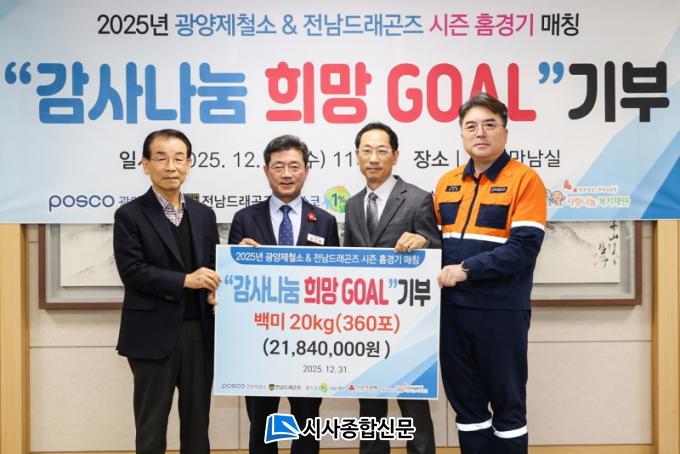 ¡®°¨»ç³ª´® Èñ¸Á Goal¡¯Àº Àü³²µå·¡°ïÁî°¡ Áö¿ª»çȸ·ÎºÎÅÍ ¹ÞÀº »ç¶û¿¡ º¸´äÇϰí Ã౸¸¦ ÅëÇØ ³ª´®À» ½ÇõÇϰíÀÚ, 2013³âºÎÅÍ À̾î¿À°í ÀÖ´Â ´ëÇ¥ »çȸ°øÇå ÇÁ·Î±×·¥ÀÌ´Ù. ÇØ´ç ÇÁ·Î±×·¥Àº Àü³²µå·¡°ïÁî ¼±¼öµéÀÌ È¨°æ±â¿¡¼ µæÁ¡ÇÒ ¶§¸¶´Ù Æ÷½ºÄÚ ±¤¾çÁ¦Ã¶¼Ò°¡ ¸Åα׷£Æ® ¹æ½ÄÀ¸·Î ÇÔ²² Âü¿©ÇØ, ¾çÃøÀÌ °¢°¢ ½Ò 100kg¾¿À» Àû¸³Çϰí À̸¦ ¿¬¸» Áö¿ª ÀÌ¿ôµé¿¡°Ô Àü´ÞÇÏ´Â ¹æ½ÄÀ¸·Î ¿î¿µµÇ°í ÀÖ´Ù.