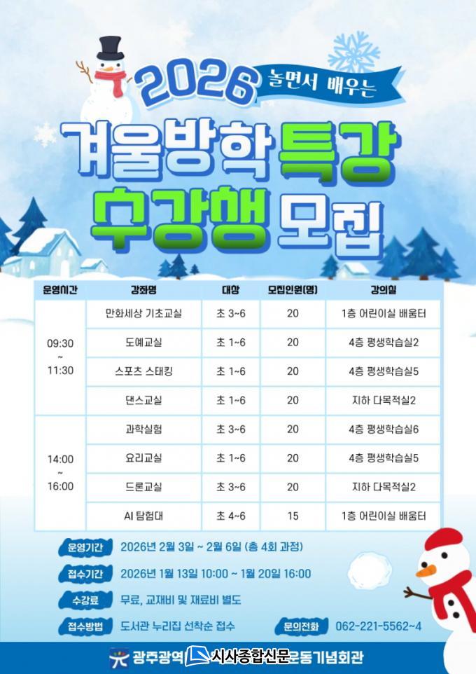 ¼ö°·á´Â ¹«·á´Ù. ´Ü, ±³Àçºñ ¹× Àç·áºñ´Â ¼ö°»ýÀÌ ºÎ´ãÇØ¾ß ÇÑ´Ù. ¼ö°½ÅûÀº ¿À´Â 13ÀÏ ¿ÀÀü 10½ÃºÎÅÍ 20ÀÏ ¿ÀÈÄ 4½Ã±îÁö ´©¸®Áý ¿Â¶óÀÎ ¼ö°½Åû °Ô½Ã(https://lib.gen.go.kr/student/edusat/list.do)À» ÅëÇØ ÇÏ¸é µÈ´Ù.