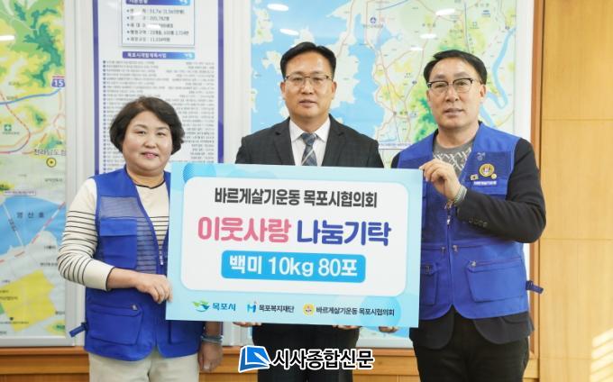 | ¹Ù¸£°Ô»ì±â¿îµ¿ ¸ñÆ÷½ÃÇùÀÇȸ, ¸ñÆ÷º¹ÁöÀç´Ü¿¡ ¹é¹Ì 80Æ÷ ±âŹ Áö¿ª»çȸ ³ª´® ½Çõ¡¦¹é¹Ì 10kg 80Æ÷ Àü´Þ |