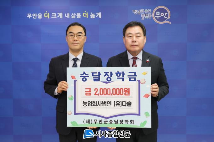 [½Ã»çÁ¾ÇսŹ® = ¿À½ÂÅà ±âÀÚ] ¹«¾È±º(±º¼ö ±è»ê)Àº Áö³ 9ÀÏ ³ó¾÷ȸ»ç¹ýÀÎ À¯ÇÑȸ»ç ´Ù¼Ö ±èÁö¼ö ´ëÇ¥°¡ Áö¿ª ÀÎÀç À°¼ºÀ» À§ÇØ (Àç)¹«¾È±º½Â´ÞÀåÇÐȸ¿¡ ÀåÇÐ±Ý 200¸¸ ¿øÀ» ±âŹÇß´Ù°í ¹àÇû´Ù.
