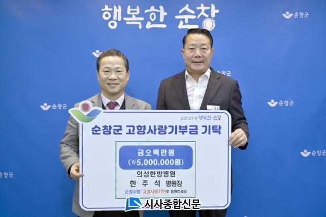 | ÀǼºÇѹ溴¿ø ÇÑÁÖ¼® º´¿øÀå, ¼øÃ¢±º¿¡ °íÇâ»ç¶û±âºÎ±Ý 500¸¸¿ø ±âŹ |