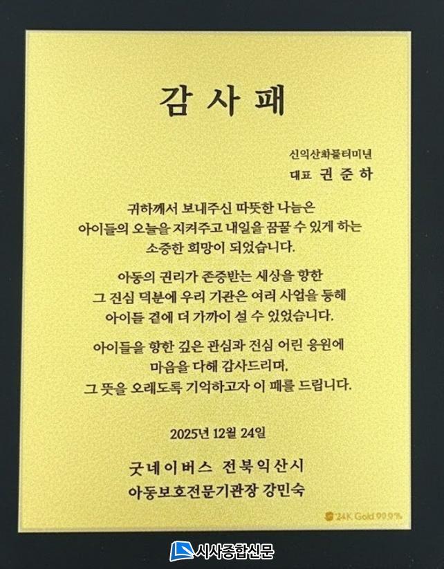 ÀüºÏÀÍ»ê½Ã¾Æµ¿º¸È£Àü¹®±â°üÀº ÇØ´ç ÈÄ¿ø±ÝÀ» ¹ÙÅÁÀ¸·Î ½ÅÇÐ±â ¹× °Ü¿ïö »ýȰ ¾ÈÁ¤À» À§ÇÑ Å°Æ® Áö¿ø°ú, ³²¾ÆÃ»¼Ò³âÀÇ À§»ý°ü¸®¸¦ À§ÇÑ ³²¾ÆÅ°Æ® Áö¿ø, ÇдëÇÇÇØ¾Æµ¿ÀÇ ÇнÀ µ¿±â ¹× ÀÚ±âÈ¿´É°¨ Çâ»óÀ» À§ÇÑ ÀåÇÐ±Ý Áö¿ø µî ¿©·¯ ¾Æµ¿º¸È£»ç¾÷À» ÃßÁøÇßÀ¸¸ç À̸¦ ÅëÇØ Áö¿ª»çȸ ³» ¾Æµ¿°ú °¡Á¤ÀÇ ¾ÈÁ¤ÀûÀÎ »ýȰ°ú ȸº¹À» µµ¸ðÇß´Ù. À̹ø °¨»çÆÐ´Â ÀÌ·¯ÇÑ ³ª´®°ú »çȸ°øÇåÀÇ ¶æ¿¡ ±íÀº °¨»ç¸¦ ÀüÇϰíÀÚ ¸¶·ÃµÆ´Ù.
