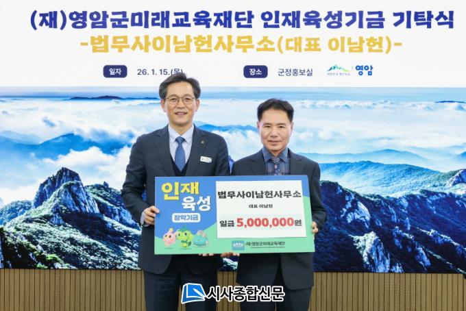 ¹ý¹«»çÀ̳²Çå»ç¹«¼Ò À̳²Çå ´ëÇ¥´Â 2008³âºÎÅÍ ²ÙÁØÈ÷ ¿µ¾Ï ÀÎÀç À°¼º°ú ±³À° ¹ßÀüÀ» À§ÇØ ±âºÎ¸¦ À̾î¿À°í ÀÖ°í, À̹ø ±âºÎ·Î ´©Àû ÀåÇÐ±Ý 4,500¸¸¿øÀ» ±â·ÏÇß´Ù.