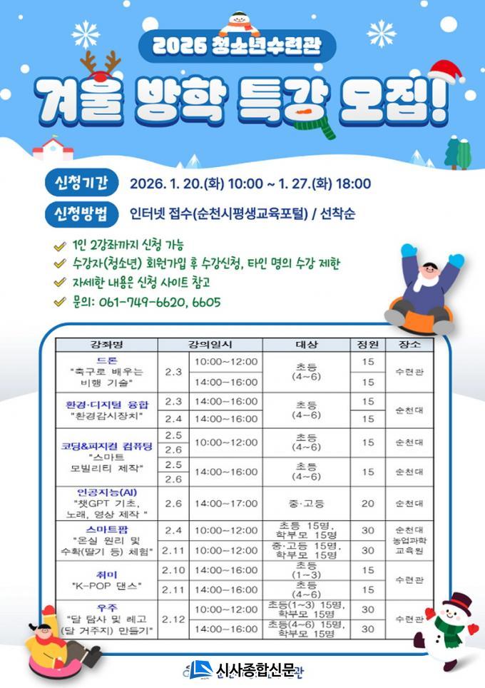 ¼øÃµ½Ã û¼Ò³â¼ö·Ã°ü ¹× ¼øÃµ´ëÇб³ ÀÏ¿øÀ» Áß½ÉÀ¸·Î 2¿ù 3ÀϺÎÅÍ 2¿ù 12ÀϱîÁö ¿î¿µµÇ¸ç, °ü³» ÃÊ¡¤Áß¡¤°íµîÇлý°ú Çкθð ÃÑ 260¸íÀ» ´ë»óÀ¸·Î ¿À´Â 20ÀÏ ¿ÀÀü 10½ÃºÎÅÍ 27ÀÏ ¿ÀÈÄ 6½Ã±îÁö ¼øÃµ½ÃÆò»ý±³À°Æ÷ÅÐÀ» ÅëÇØ ¿Â¶óÀÎ ¼±Âø¼øÀ¸·Î ¸ðÁýÇÑ´Ù.