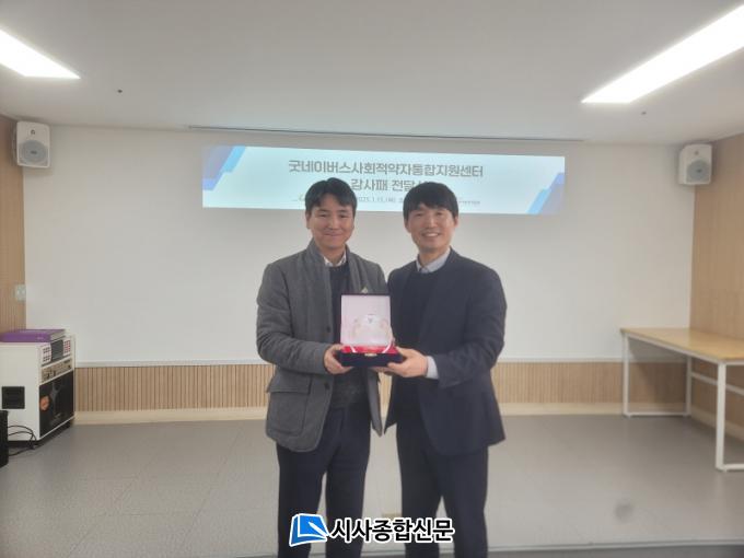 ¾Æµ¿º¹ÁöÇùȸÀå Ãָ𼼠¿øÀåÀº °¨»çÆÐ¸¦ Àü´ÞÇϸ硰±Â³×À̹ö½º»çȸÀû¾àÀÚÅëÇÕÁö¿ø¼¾ÅÍ´Â Áö¿ª ³» ¹üÁË ¾Æµ¿ ¹× °¡Á¤À» À§ÇÑ »çȸÀû ¾àÀÚ Áö¿ø¿¡ Ç×»ó ¾ÕÀå¼ ¿Ô´Ù¡±¸ç,¡°ÇöÀå¿¡¼ ü°¨ÇÒ ¼ö ÀÖ´Â ½ÇÁúÀûÀÎ µµ¿òÀ» ¾Æ³¢Áö ¾ÊÀº Á¡¿¡ ±íÀÌ °¨»çµå¸®¸ç, ¾ÕÀ¸·Îµµ ±ä¹ÐÇÑ Çù·ÂÀ» ÅëÇØ Áö¿ª ¾Æµ¿°ú »çȸÀû ¾àÀÚ¸¦ ÇÔ²² º¸È£ÇØ ³ª°¡°Ú´Ù¡±°í ¹àÇû´Ù.