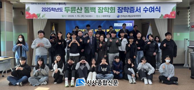 µÎ·û»ê µ¿¹éÀåÇÐȸ´Â Àü¶ó³²µµ ÇØ³² Áö¿ª ÇлýµéÀÇ ÀÎÀç À°¼ºÀ» À§ÇØ ¼³¸³µÈ ÀåÇÐȸ·Î, ¡°Èñ¸ÁÀÌ ½ÃÀ۵Ǵ ¶¥³¡ ÇØ³²ÀÇ ÀÎÀç À°¼º¡±À» ±âÄ¡·Î 2005³â¿¡ ¼³¸³µÇ¾î Áö±Ý±îÁö ÀåÇбÝÀ» ¼ö¿©Çϰí ÀÖ´Ù. À̹ø ÀåÇÐ Áõ¼ ¼ö¿©½ÄÀº Áö¿ª ÀÎÀç ¹ß±¼°ú ±³À°º¹Áö ½ÇÇöÀ» À§ÇÑ ÃëÁö·Î ¸¶·Ã µÇ¾ú´Ù.