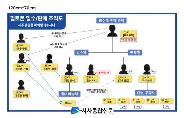 À̷νá, Á¦ÁÖ °æÂûÀº Á¦ÁÖµµ¸¦ °æÀ¯ÇÏ¿© ±¹³»·Î ÇÊ·ÎÆùÀ» ¹ÝÀÔÇÏ·Á ÇÏ¿´´ø ¿Ü±¹ÀÎ Á¶Á÷¿ø ÃÑ 12¸íÀ» °Ë°ÅÇϰí ÀÌ Áß 7¸íÀ» ±¸¼ÓÇÏ¿´À¸¸ç, ÃÑ1,181g(½Ã°¡ 7¾ï 9õ¸¸¿ø »ó´ç, ¾à 4¸¸¸í µ¿½Ã Åõ¾àºÐ)ÀÇ ÇÊ·ÎÆùÀ» ¾Ð¼öÇÏ¿´´Ù. ¡Ø ij¸®¾î ¹ÝÀÔ ÇÊ·ÎÆù 1,131g / ±¹³» ÆÇ¸ÅÃ¥ °Ë°Å °úÁ¤¿¡¼ ¹ß°ßµÈ ÇÊ·ÎÆù 50g °øÇ×À» ÅëÇÑ ¿Ü±¹ÀÎÀÇ ¸¶¾à ¹ÝÀÔ ½Ãµµ°¡ È®Àεʿ¡ µû¶ó, Á¦ÁÖ°æÂûû ¸¶¾à¼ö»ç´ë¿¡¼ »ó¼± ¹× À¯Åë°æ·Î¿¡ ´ëÇØ ¼ö»ç¸¦ È®´ëÇÔÀ¸·Î½á, ¹Ð¼ö⇨°ø±Þ⇨ÆÇ¸Å⇨Åõ¾àÀ¸·Î À̾îÁö´Â Ä¡¹ÐÇÑ Á¡Á¶Á÷ ÇüÅÂÀÇ À¯Åë°æ·Î¸¦ È®ÀÎÇϰí, 3°³¿ù¿¡ °ÉÄ£ ¼¿ï µî Ÿ Áö¿ªÀ¸·ÎÀÇ ÃâÀå°ú Àẹ ¼ö»ç µîÀ» ÅëÇØ ²öÁú±â°Ô °ü·ÃÀÚµéÀ» ÃßÀûÇÏ¿´´Ù.