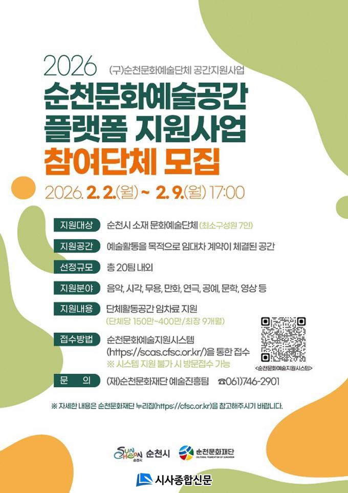±âŸ ÀÚ¼¼ÇÑ »çÇ×Àº ¼øÃµ¹®ÈÀç´Ü ´©¸®Áý(www.cfsc.or.kr) °ø°í¹®¿¡¼ È®ÀÎÇÒ ¼ö ÀÖÀ¸¸ç, ¿¹¼úÁøÈïÆÀ(061-746-2901)À¸·Î ¹®ÀÇÇÏ¸é µÈ´Ù.