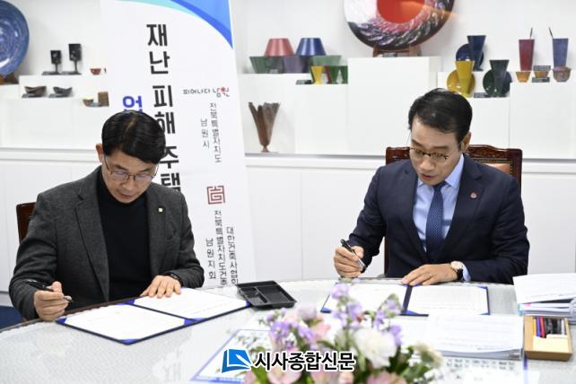 ³²¿ø½Ã °ÇÃà°úÀåÀº ¡°À̹ø Çù¾àÀº Àç³ ÇÇÇØÁÖÅÿ¡ ´ëÇÑ ³²¿øÁö¿ª °ÇÃà»çµéÀÇ ÀÌÀü ¼±Á¦Àû Áö¿ø »ç·Ê¸¦ Á¤Ã¥À¸·Î Á¦µµÈÇÑ °ÍÀ¸·Î, ½ÅÃà °úÁ¤¿¡¼ ÇàÁ¤°ú °ÇÃà Àü¹®¼ºÀÌ Çù·ÂÇÏ´Â ±â¹ÝÀ» ¸¶·ÃÇÑ °Í¡±À̶ó¸ç, ¡°ÇÇÇØÁÖ¹ÎÀÌ Ã¼°¨ÇÒ ¼ö ÀÖ´Â ½ÇÁúÀûÀÎ Áö¿øÀÌ µÇµµ·Ï ÃÖ¼±À» ´ÙÇϰڴÙ.¡±°í ¸»Çß´Ù.