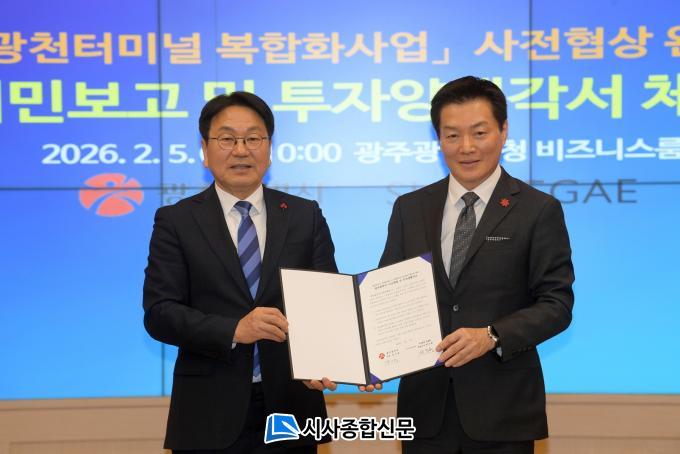 ±¤Áֽô ±¤ÃµÅ͹̳Πº¹ÇÕÈ»ç¾÷ °³¹ß°èȹ°ú °ø°ø±â¿©±Ý 1497¾ï¿ø Çù»ó °á°ú, ±¤Ãµ±Ç¿ª ±³Åë ´ëÃ¥, ƯȵðÀÚÀÎ Á¶°¨µµ µîÀ» °ø°³ÇÑ µÚ, ½Å¼¼°è¿Í ÃÑ 3Á¶¿ø ±Ô¸ðÀÇ ÅõÀÚ ¾çÇØ°¢¼¸¦ ü°áÇß´Ù.