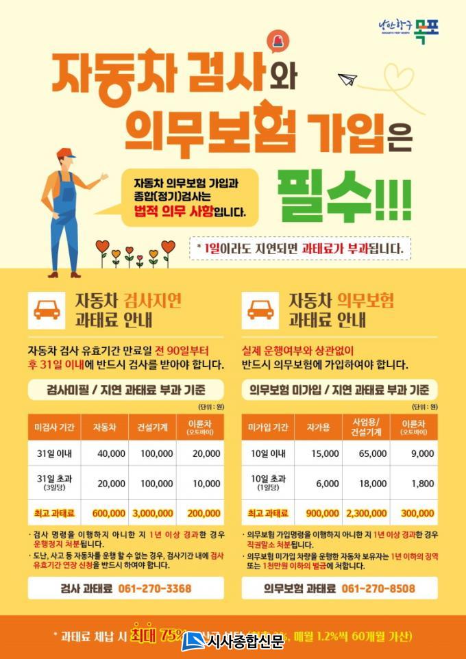 ÀÚµ¿Â÷ °Ë»ç¿Í Àǹ«º¸Çè °¡ÀÔÀº ½Ã¹ÎÀÇ ¾ÈÀü°ú Á÷°áµÇ´Â ÇʼöÀûÀÎ ¹ýÀû Àǹ«·Î, ´Ü ÇÏ·ç¶óµµ Áö¿¬µÉ °æ¿ì °úÅ·ᰡ ºÎ°úµÉ ¼ö ÀÖ¾î °¢º°ÇÑ ÁÖÀǰ¡ ÇÊ¿äÇÏ´Ù.