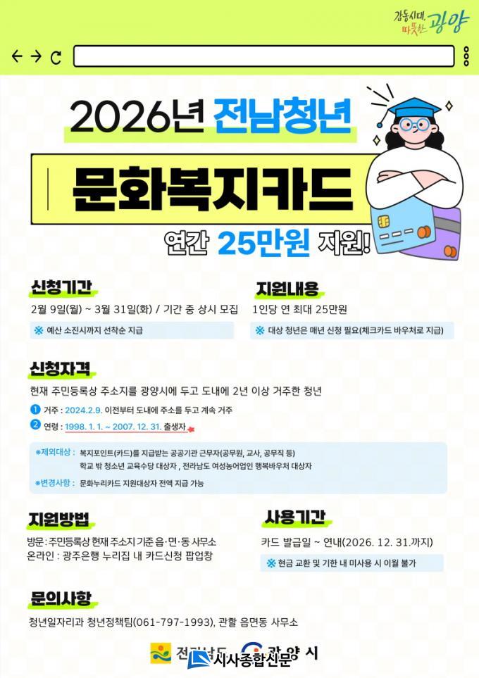 Àü³²Ã»³â ¹®Èº¹ÁöÄ«µå Áö¿ø»ç¾÷Àº Àü¶ó³²µµ¿¡ °ÅÁÖÇϴ û³â¿¡°Ô üũīµå ¹Ù¿ìó ¹æ½ÄÀÇ ¹®Èº¹ÁöÄ«µå¸¦ Áö±ÞÇÏ´Â »ç¾÷À¸·Î, 1ÀÎ´ç ¿¬ ÃÖ´ë 25¸¸ ¿øÀ» Áö¿øÇÑ´Ù.