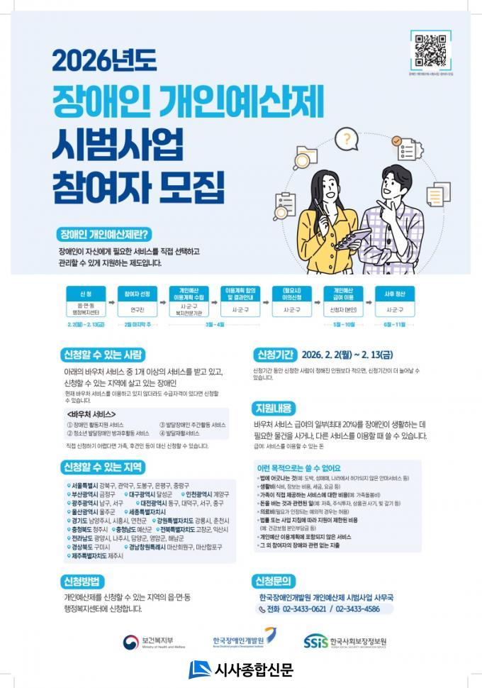 | ´ã¾ç±º, ¡®2026³â Àå¾ÖÀÎ °³Àο¹»êÁ¦¡¯ ½Ã¹ü»ç¾÷ ¼±Á¤ 5¿ù º»°Ý ½ÃÇà, Àå¾ÖÀÎ ÀÌ¿ë±Ç ±Þ¿©ÀÇ 20% ¹üÀ§ ³»¿¡¼ ¼ºñ½º¡¤¹°Ç° ÀÚÀ² ¼±Åà |