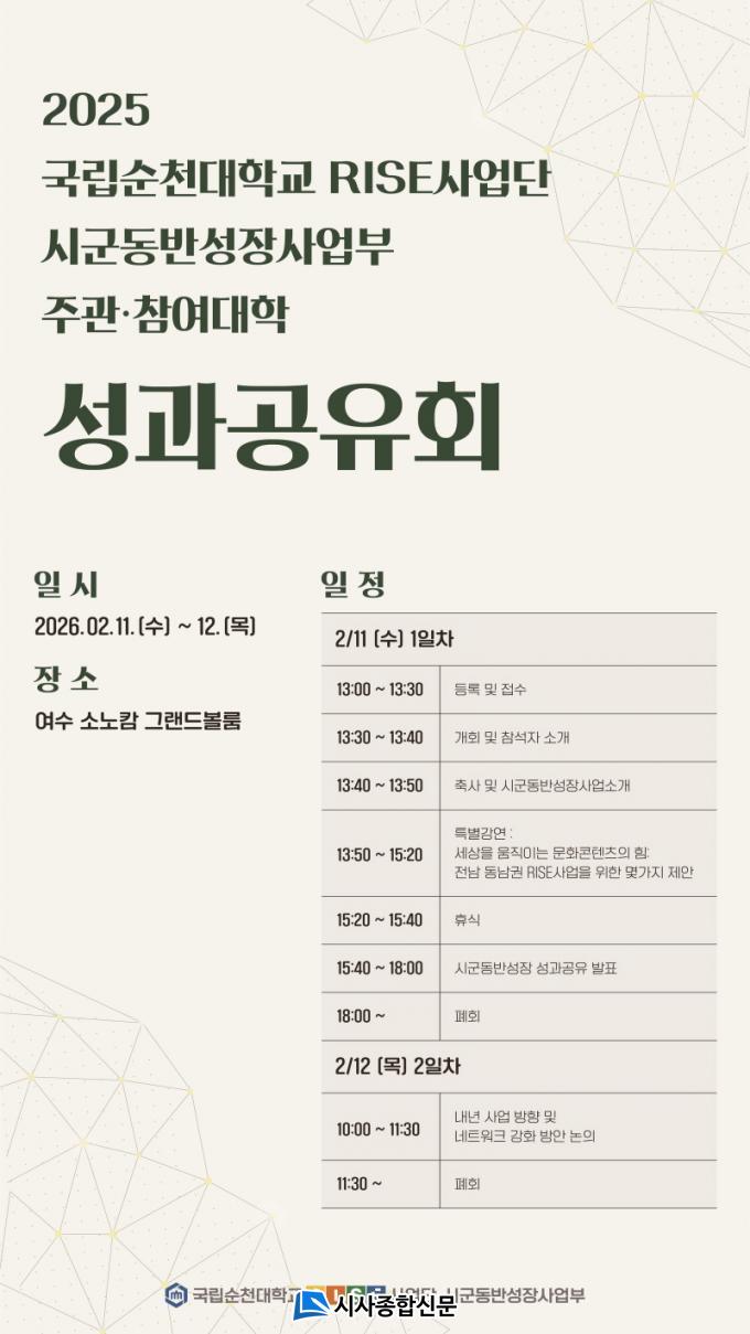 ±¹¸³¼øÃµ´ëÇб³ RISE»ç¾÷´Ü ½Ã±ºµ¿¹Ý¼ºÀå»ç¾÷ºÎÀå ¿ÀÇö¹ÎÀº¡°À̹ø ¼º°ú°øÀ¯È¸´Â ½Ã±ºµ¿¹Ý¼ºÀå»ç¾÷ÀÇ ¼º°ú¸¦ ´Ü¼øÈ÷ ³ª¿ÇÏ´Â ÀÚ¸®°¡ ¾Æ´Ï¶ó, ´ëÇаú ÁöÀÚü, Áö¿ªÀÌ ÇÔ²² ¸¸µé¾î ¿Â Çù·ÂÀÇ °¡Ä¡¸¦ °øÀ¯ÇÏ´Â ÀÚ¸®¡±¶ó¸ç, ¡°³íÀÇµÈ ³»¿ëÀ» ¹ÙÅÁÀ¸·Î ÇâÈÄ ½Ã±ºµ¿¹Ý Çù·Â»ç¾÷ÀÇ ÁúÀû °íµµÈ¿Í Áö¼Ó°¡´ÉÇÑ Áö¿ªÇõ½Å ¸ðµ¨À» ±¸ÃàÇØ ³ª°¡°Ú´Ù¡±°í ¹àÇû´Ù.