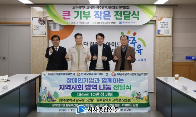 | ±¤Áֽñ³À°Ã», ±¤ÁÖ½ÃÀå¾ÖÀαÇÀÍÇùȸ¼ ¸¶½ºÅ© ±âºÎ ¹Þ¾Æ 5¸¸Àå Àü´Þ¡¦Çб³ °¨¿°º´ ¿¹¹æ¡¤º¸°Ç°ü¸® Ȱ¿ë |