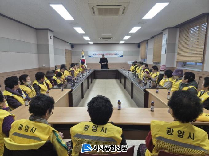 À̳¯ ¹ß´ë½Ä¿¡¼´Â ³ëÀÎÀÏÀÚ¸®»ç¾÷ÀÇ ¿øÈ°ÇÑ ÃßÁø°ú Ã¥ÀÓ ÀÖ´Â Âü¿©¸¦ ´ÙÁüÇÏ´Â Âü¿©ÀÚ ´ëÇ¥ÀÇ °áÀǹ® ³¶µ¶À» ½ÃÀÛÀ¸·Î ³ëÀÎ °øÀÍȰµ¿ Çù¾à¼ ÀÛ¼º, »ç¾÷ Àü¹Ý¿¡ ´ëÇÑ ¾È³»°¡ Â÷·Ê·Î ÁøÇàµÆ´Ù. ÀÌ¾î ¾î¸£½ÅµéÀÌ È°µ¿ °úÁ¤¿¡¼ À¯ÀÇÇØ¾ß ÇÒ ¾ÈÀü¼öÄ¢°ú »ç°í ¿¹¹æÀ» Áß½ÉÀ¸·Î ÇÑ ¾ÈÀü±³À°µµ ÇÔ²² ½Ç½ÃÇØ Âü¿©ÀÚµéÀÇ ÀÌÇØ¸¦ µµ¿Ô´Ù.