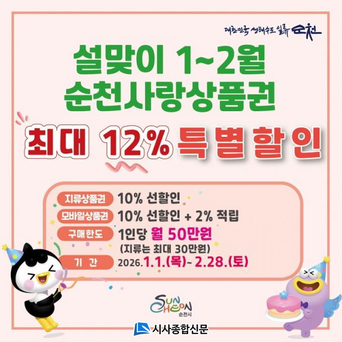 ¾Æ¿ï·¯ ¼øÃµ½Ã´Â 2025³â¿¡ Áö±ÞÇÑ ¹Î»ýȸº¹Áö¿ø±ÝÀÇ »ç¿ë±âÇÑÀÌ 2026³â 2¿ù 28ÀϱîÁöÀÓÀ» ½Ã¹Îµé¿¡°Ô ´Ù½Ã Çѹø ¾È³»Çß´Ù. ÇØ´ç Áö¿ø±ÝÀº Áö¿ª°æÁ¦ ȸº¹À» À§ÇØ ÇѽÃÀûÀ¸·Î Áö±ÞµÈ °ÍÀ¸·Î, ±âÇÑ ³» »ç¿ëÇÏÁö ¾ÊÀº ¹Î»ýȸº¹Áö¿ø±ÝÀº ÀÌÈÄ »ç¿ëÇÒ ¼ö ¾ø°Ô µÈ´Ù.