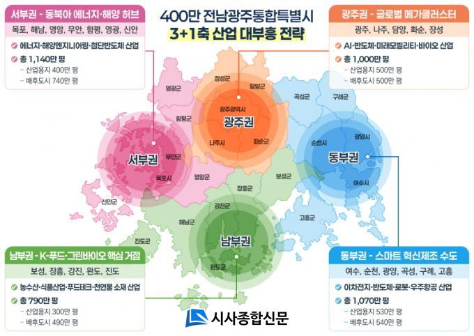 ±è Áö»ç´Â ¡°Àü³²±¤ÁÖÅëÇÕÆ¯º°½Ã¸¦ ±âÁ¸ ±¤Áֱǡ¤¼ºÎ±Ç¡¤µ¿ºÎ±Ç 3Ãà ±Ç¿ª¿¡ »õ·Î ³²ºÎ±ÇÀ» Æ÷ÇÔ½ÃÄÑ ¡®3+1Ã࡯ 4´ë ±Ç¿ªÀ¸·Î ÀçÆíÇϰڴ١±¸ç ¡°ÃÑ 4õ¸¸ Æò ±Ô¸ðÀÇ Æ¯È»ê¾÷ ´ÜÁö¿Í ÷´Ü»ê¾÷ ½Åµµ½Ã¸¦ Á¶¼ºÇØ 400¸¸ Ưº°½Ã¸¦ ¿Ï¼ºÇϰڴ١±°í ¹àÇû´Ù.