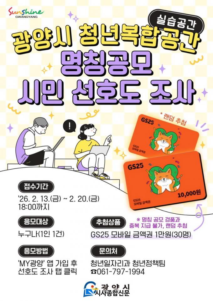±¤¾ç½Ã °ü°èÀÚ´Â ¡°Ã»³âº¹ÇÕ°ø°£ ¸íĪ °ø¸ðÀü¿¡ ¸¹Àº °ü½ÉÀ» °¡Á®Áּż °¨»çµå¸°´Ù¡±¸ç ¡°½Ã¹Î ÀǰßÀÌ ¹Ý¿µµÈ »ó¡ÀûÀÎ ¸íĪÀÌ ¼±Á¤µÉ ¼ö ÀÖµµ·Ï ¼±È£µµ Á¶»ç¿¡µµ ¸¹Àº °ü½É°ú Âü¿© ºÎʵ台´Ù¡±°í ¸»Çß´Ù.