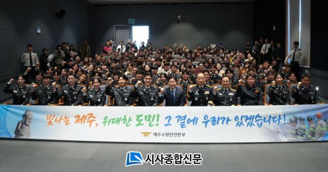 À̳¯ Çà»ç¿¡´Â ¿À¿µÈÆ Á¦ÁÖµµÁö»ç¸¦ ºñ·ÔÇØ ¹ÚÁø¼ö ¼Ò¹æ¾ÈÀüº»ºÎÀå°ú °¡Á·µéÀÌ Âü¼®ÇØ ½ÅÀÓ ¼Ò¹æ°ø¹«¿øµéÀÇ »õ·Î¿î Ãâ¹ßÀ» ÇÔ²² ÃàÇÏÇß´Ù.