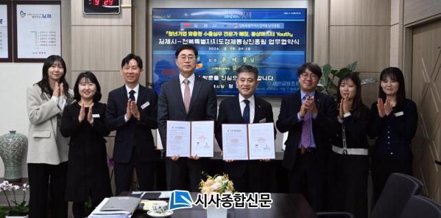 ±èÁ¦½Ã´Â ¡¸2026³â Åë»ó¸¶½ºÅÍ YOUTH »ç¾÷¡¹ ÃßÁøÀ» À§ÇØ 19ÀÏ Á¤¼ºÁÖ ±èÁ¦½ÃÀå, ¼ÇØ¿µ ¼ºÀåÀü·«½ÇÀå, À±¿©ºÀ °æÁ¦Åë»óÁøÈï¿ø ¿øÀå, ±è±¤Èñ ¸¶ÄÉÆÃÅë»óº»ºÎÀå°ú ÇÔ²² ¾÷¹«Çù¾àÀ» ü°áÇß´Ù°í ¹àÇû´Ù.