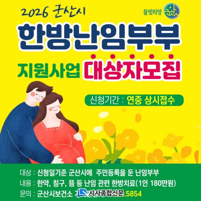 [½Ã»çÁ¾ÇսŹ® = ¿À½ÂÅà ±âÀÚ] ±º»ê½Ãº¸°Ç¼Ò´Â ³ÀÓÀ¸·Î ¾î·Á¿òÀ» °Þ°í ÀÖ´Â ºÎºÎÀÇ °æÁ¦Àû ºÎ´ãÀ» ¿ÏÈÇÏ°í °Ç°ÇÑ ÀӽŰú Ãâ»êÀ» Áö¿øÇϱâ À§ÇØ ¡®ÇÑ¹æ ³ÀӺκΠÁö¿ø»ç¾÷¡¯ Âü¿©ÀÚ¸¦ ¸ðÁýÇÑ´Ù.