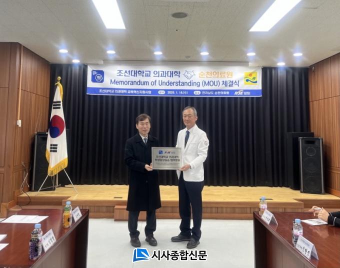 | Á¶¼±´ë Àǰú´ëÇÐ-¹«¾ÈÁ¾ÇÕº´¿ø MOU ÇöÆÇ½Ä Àü´Þ (·ùºÀ°ü ¿øÀå(ÁÂ)°ú ¾È¿µÁØ ÇÐÀå(¿ì) |