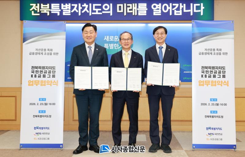 µµ´Â 23ÀÏ µµÃ»¿¡¼ ±è°ü¿µ ÀüºÏÀÚÄ¡µµÁö»ç, ±è¼ºÁÖ ±¹¹Î¿¬±Ý°ø´Ü ÀÌ»çÀå, ¾çÁ¾Èñ KB±ÝÀ¶±×·ì ȸÀåÀÌ Âü¼®ÇÑ °¡¿îµ¥ ¡®ÀÚ»ê¿î¿ë Æ¯È ±ÝÀ¶»ýŰè Á¶¼º ¹× Áö¿ª°æÁ¦ Ȱ¼ºÈ¡¯¸¦ À§ÇÑ 3ÀÚ ¾÷¹«Çù¾àÀ» ü°áÇß´Ù.