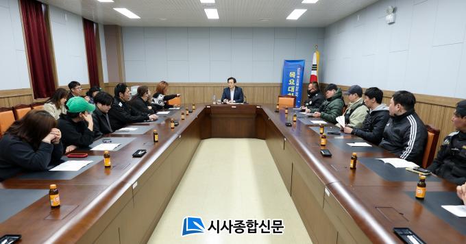 [½Ã»çÁ¾ÇսŹ® = ¿À½ÂÅà ±âÀÚ] ¿µ¾Ï±ºÀÌ 20ÀÏ »ïÈ£À¾ÇàÁ¤º¹Áö¼¾ÅÍ¿¡¼ ¡®¼ÒÅëÀÇ Ã¢À» ¿©´Â ½Ã°£, ¸ñ¿ä ´ëÈ¡¯¸¦ ¿¾î ¹è´Þ´ëÇà±â»ç µî ¹è´Þ¾÷ Á¾»çÀÚµéÀÇ ¾Ö·Î»çÇ×À» µè°í, ¾ÈÁ¤Àû ±Ù¹« ȯ°æ Á¶¼ºÀ» À§ÇØ ´Ù¾çÇÑ À̾߱⸦ ³ª´³´Ù.