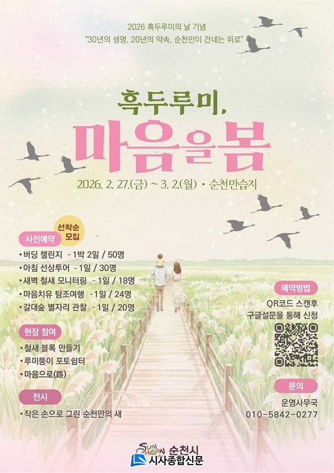 ÅäÅ© ÄܼƮ¿Í ÇÔ²² ¼øÃµ¸¸ÀÇ ÀÚ¿¬À» ¿ÂÀüÈ÷ üÇèÇÒ ¼ö ÀÖ´Â Ä¡À¯¡¤Å½Á¶ ÇÁ·Î±×·¥µµ ¼øÃµ¸¸ ÀÏ¿ø¿¡¼ ¿î¿µµÈ´Ù. »çÀü¿¹¾à ÇÁ·Î±×·¥À¸·Î ¡â»õº® ö»õ ¸ð´ÏÅ͸µ ¡â¼±»óÅõ¾î ¡â1¹Ú2ÀÏ ¹öµù 縰Áö ¡â°¥´ë½£ º°ÀÚ¸® °üÂû µîÀÌ ¸¶·ÃµÆÀ¸¸ç, ¼øÃµ¸¸½ÀÁö ´©¸®Áý¿¡¼ ¿¹¾àÇÒ ¼ö ÀÖ´Ù. ÇöÀå Âü¿© ÇÁ·Î±×·¥À¸·Î´Â ¡â¸¶À½À¸·Î(ÖØ) ¡âö»õ ºí·Ï ¸¸µé±â ¡â·ç¹Ì¡¤¶×ÀÌ Æ÷Åä½°ÅÍ µî °¡Á·ÀÌ ÇÔ²² Áñ±æ ¼ö ÀÖ´Â Âü¿©Çü ÄÜÅÙÃ÷°¡ ÁغñµÈ´Ù. »çÀü¿¹¾à ÇÁ·Î±×·¥ Âü¿©ÀÚ¿¡°Ô´Â ¼øÃµ»ç¶û»óǰ±ÇÀ» Á¦°øÇØ Áö¿ª°æÁ¦ Ȱ¼ºÈ¿¡ ±â¿©ÇÒ °èȹÀÌ´Ù.