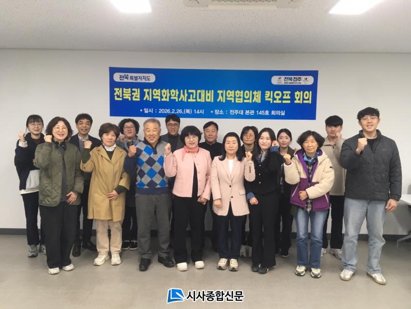 µµ´Â 26ÀÏ µµÃ»¿¡¼ ÀüºÏÁö¹æÈ¯°æÃ», ÈÇй°Áú¾ÈÀü¿ø, ÀüÁÖ‧±º»ê‧ÀÍ»ê‧Á¤À¾‧¿ÏÁÖ µî 5°³ ½Ã‧±º ¹× ½Ã¹Î´Üü °ü°èÀÚ µî ÃÑ 15¸íÀ¸·Î ±¸¼ºµÈ ¡¸ÀüºÏ±Ç Áö¿ªÈÇлç°í´ëºñ Áö¿ªÇùÀÇü¡¹¸¦ Ãâ¹üÇϰí ù ȸÀǸ¦ °³ÃÖÇß´Ù.