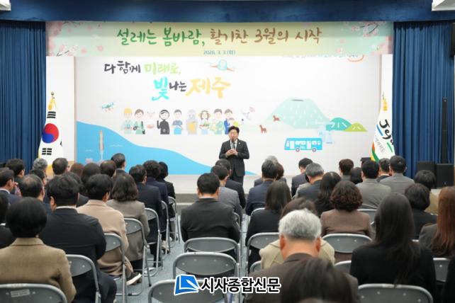 ¿À Áö»ç´Â ¡°¿ì¸®°¡ ¹Ì·¡¸¦ À§ÇØ ÀÌ¹Ì ¹ßÀ» ³»µóÀº ±æÀº Àڽۨ ÀÖ°Ô °¡´Â °ÍÀÌ Áß¿äÇÏ´Ù¡±¸ç "Á¦ÁÖµµ°¡ ¼±µµÀûÀ¸·Î ÇØ¿Â ÀϵéÀÌ ´ëÇѹα¹ÀÇ Ç¥ÁØÀÌ µÉ ¼ö ÀÖµµ·Ï ÀÚ±à½ÉÀ» °®°í Èçµé¸² ¾øÀÌ ÇÔ²² ³ª¾Æ°¡ÀÚ¡±°í °Á¶Çß´Ù.