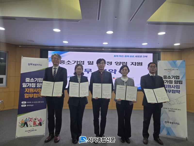 µµ´Â 4ÀÏ µµÃ» ÁßȸÀǽǿ¡¼ °í¿ë³ëµ¿ºÎ ÀüÁÖ¡¤Àͻꡤ±º»ê°í¿ë¼¾ÅÍ, ÀüºÏ°æÁ¦Åë»óÁøÈï¿ø°ú ¡®Áß¼Ò±â¾÷ ÀÏ¡¤°¡Á¤ ¾ç¸³ Áö¿ø»ç¾÷ Ȱ¼ºÈ¸¦ À§ÇÑ ¾÷¹«Çù¾à¡¯À» ü°áÇß´Ù.