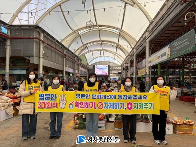 ƯÈ÷ ¼³ ¿¬ÈÞ¸¦ ¾ÕµÐ 2¿ù 11ÀÏ ±¤¾çÀ¾ 5ÀϽÃÀå ÀÏ¿ø¿¡¼ º¸°Ç¼Ò Á÷¿ø 5¸íÀÌ Âü¿©ÇØ º´¹®¾È ¹®È°³¼± Ä·ÆäÀÎÀ» ÆîÄ¡¸ç, ½Ã¹Îµé¿¡°Ô º´¹®¾È ¹®È °³¼± 3´ë ¿øÄ¢ÀÎ ¡ãÈ®ÀÎÇϱâ(º´¹®¾È °¡´É ½Ã°£°ú Àå¼Ò È®ÀÎ) ¡ãÀÚÁ¦Çϱâ(ȯÀÚ¸¦ À§ÇØ º´½Ç ¸éȸ ÀÚÁ¦) ¡ãÁöÄÑÁÖ±â(¼Õ À§»ý, ±âħ ¿¹Àý µî ¿¹¹æ¼öÄ¢ Áؼö)ÀÇ ½ÇõÀ» ¾È³»Çß´Ù.
