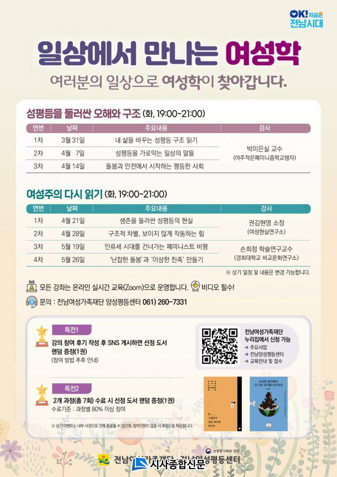Àü³²¿©¼º°¡Á·Àç´ÜÀº Áö¿ª ³» ¿©¼ºÁÖÀÇ Àü¹®¼º Çâ»ó°ú ¼ºÆòµî ¹®È È®»êÀ» À§ÇØ ¿©¼ºÇÐ Àü¹®°úÁ¤À» ¿î¿µÇÑ´Ù. ¿ÃÇØ·Î 8³â°¸¦ ¸ÂÀÌÇÑ ÀÌ °úÁ¤¿¡´Â Ȱµ¿°¡¿Í ÀÏ¹Ý µµ¹Î µî ÃÑ 1,778¸íÀÌ Âü¿©Çϸç Áö¿ªÀ» ´ëÇ¥ÇÏ´Â ¿©¼ºÇÐ °Á·ΠÀÚ¸® Àâ¾Ò´Ù.