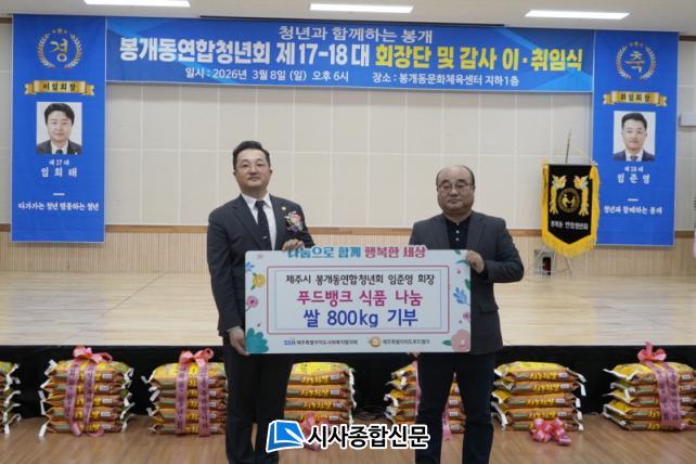 [½Ã»çÁ¾ÇսŹ® = °í¼º¹Î ±âÀÚ] ºÀ°³µ¿¿¬ÇÕû³âȸ(ȸÀå ÀÓÁØ¿µ)´Â Áö³ 8ÀÏ, Á¦ÁÖÆ¯º°ÀÚÄ¡µµ»çȸº¹ÁöÇùÀÇȸ(ȸÀå °í°ü¿ë)¿¡ ÀÌ¿ô»ç¶û ½Ò800kgÀ» Àü´ÞÇß´Ù.