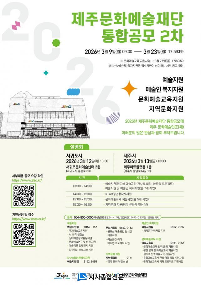 Àç´ÜÀº ÅëÇÕ°ø¸ð¿¡ ´ëÇÑ ÀÌÇØ¸¦ µ½±â À§ÇØ µµ³» ¿¹¼úÀÎÀ» ´ë»óÀ¸·Î »ç¾÷¼³¸íȸ¸¦ °³ÃÖÇÑ´Ù. ¿À´Â 12Àϰú 13ÀÏ¿¡ ¼±ÍÆ÷»ï´ÙÁ¾ÇÕ»çȸº¹Áö°ü°ú Á¦ÁÖ¾ÆÆ®Ç÷§Æû¿¡¼ °¢°¢ ÁøÇàµÇ¸ç, »ç¾÷º° °ø¸ð ÁÖ¿ä ³»¿ëÀ» ¾È³»ÇÒ ¿¹Á¤ÀÌ´Ù.