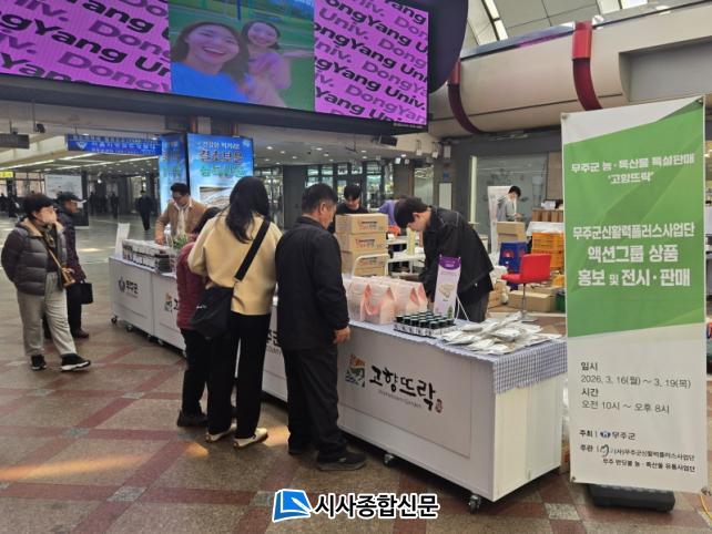 ¹«ÁÖ±º¿¡ µû¸£¸é ¿µµîÆ÷¿ª KTX¿Í ·Ôµ¥¹éÈÁ¡ ¿µµîÆ÷Á¡ »çÀÌ Åë·Î¿¡ ¹Ýµ÷ºÒÀ¯Åë»ç¾÷´Ü(´ÜÀå ±èÀαÇ)°ú ¹«ÁÖ±º ½ÅȰ·ÂÇ÷¯½º»ç¾÷´Ü(´ÜÀå ¹ÚÈñÃà)°ú ÇÔ²² Ư¼³ ÆÇ¸ÅÀåÀ» ¸¶·ÃÇßÀ¸¸ç, õ¸¶, µµ¶óÁö, »ç°ú µî ¹«ÁÖ ´ëÇ¥ ³ó»ê¹°°ú À̸¦ ¿ø·á·Î ÇÑ ´Ù¾çÇÑ °¡°ø½ÄǰµéÀ» ¼±º¸ÀδÙ.