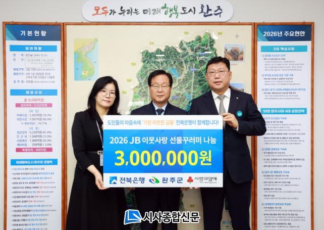 16ÀÏ ÀüºÏÀºÇàÀº ¿ÏÁÖ±ºÃ» ±º¼ö½Ç¿¡¼ Á¶Àμº ºÎÇàÀå°ú ±è¼ºµÎ ¿ÏÁÖ±ºÃ»ÁöÁ¡Àå µîÀÌ Âü¼®ÇÑ °¡¿îµ¥ À¯ÈñÅ ¿ÏÁÖ±º¼ö¿¡°Ô ¡®2026 JBÀÌ¿ô»ç¶û ¼±¹°²Ù·¯¹Ì¡¯¸¦ Àü´ÞÇß´Ù. À̹ø ±âŹÀº Áö¼ÓµÇ´Â ¹°°¡ »ó½ÂÀ¸·Î »ýȰ°í¸¦ °Þ´Â °ü³» Àú¼Òµæ °¡Á¤À» ½ÇÁúÀûÀ¸·Î µ½°íÀÚ ÀüºÏÀºÇà Ãø¿¡¼ ¸¶·ÃÇß´Ù.