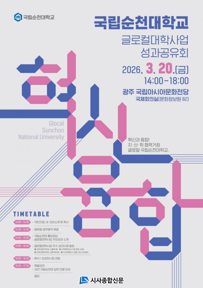 À̹ø Çà»ç´Â Á¦1±â ±Û·ÎÄôëÇÐÀ¸·Î ¼±Á¤µÈ ±¹¸³¼øÃµ´ëÇб³°¡ Áö³ 3³â°£ ÃßÁøÇØ ¿Â Çõ½Å ¼º°ú¸¦ Áö¿ª»çȸ¿Í °øÀ¯Çϰí, ´ëÇаú Áö¿ªÀÌ ÇÔ²² ¼ºÀåÇÏ´Â Çù·Â ±â¹ÝÀ» È®´ëÇϱâ À§ÇØ ¸¶·ÃµÆ´Ù.