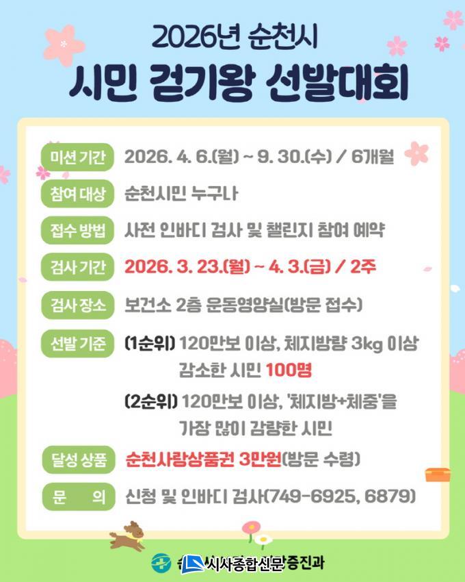 Âü¿©¸¦ Èñ¸ÁÇÏ´Â ½Ã¹ÎÀº ¿À´Â 4¿ù 3ÀϱîÁö ¼øÃµ½Ãº¸°Ç¼Ò 2Ãþ ¿îµ¿¿µ¾ç½ÇÀ» ¹æ¹®ÇØ »çÀü Àιٵð °Ë»ç¸¦ ¹ÞÀº ÈÄ ¿öÅ©¿Â °¡ÀÔÀ» È®ÀÎÇÏ¸é µÈ´Ù.