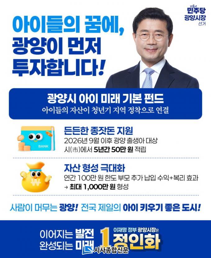 Á¤ ¿¹ºñÈ帰¡ ¹ßÇ¥ÇÑ ¡®±¤¾ç ¾ÆÀÌ ¹Ì·¡ ÆÝµå¡¯´Â 2026³â 9¿ù1ÀÏ ÀÌÈÄ Àü³² ±¤¾ç½Ã¿¡¼ ž´Â ¸ðµç ¾ÆÀÌ¿¡°Ô ¸Å³â 50¸¸¿ø¾¿ 5³â µ¿¾È ÆÝµå °èÁ¿¡ Àû¸³ÇØÁÖ´Â Á¤Ã¥ÀÌ´Ù.