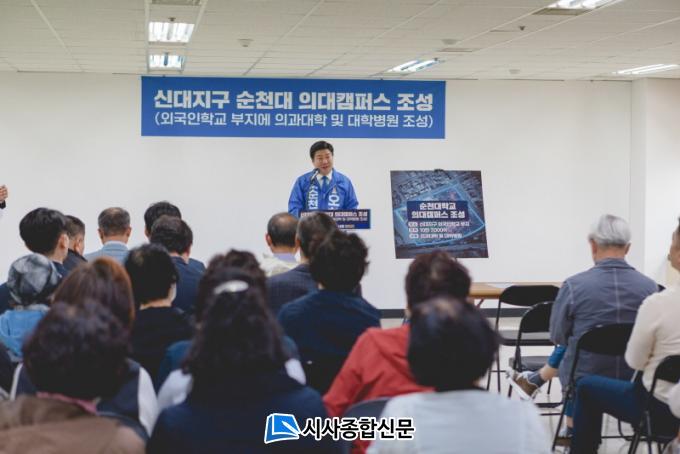 ¿ÀÇϱ٠¿¹ºñÈĺ¸ ´Â 31ÀÏ ¼±°Å»ç¹«¼Ò¿¡¼ ±âÀÚȸ°ßÀ» ÅëÇØ ¼øÃµ½Ã ½Å´ëÁö±¸¿¡ ±¹¸³¼øÃµ´ëÇб³ Àǰú´ëÇаú ´ëÇк´¿øÀ» ¼³¸³Çϰڴٴ °èȹÀ» ¹àÇû´Ù. ±×´Â "½Å´ëÁö±¸ ¿Ü±¹ÀÎÇб³ ºÎÁö¿¡ ÀÇ´ë Ä·ÆÛ½º¸¦ Á¶¼ºÇØ µ¿ºÎ±Ç ÀÇ·áÁÖ±ÇÀÇ ½ÉÀåÀ¸·Î ¸¸µé°Ú´Ù"°í ¼±¾ðÇß´Ù.