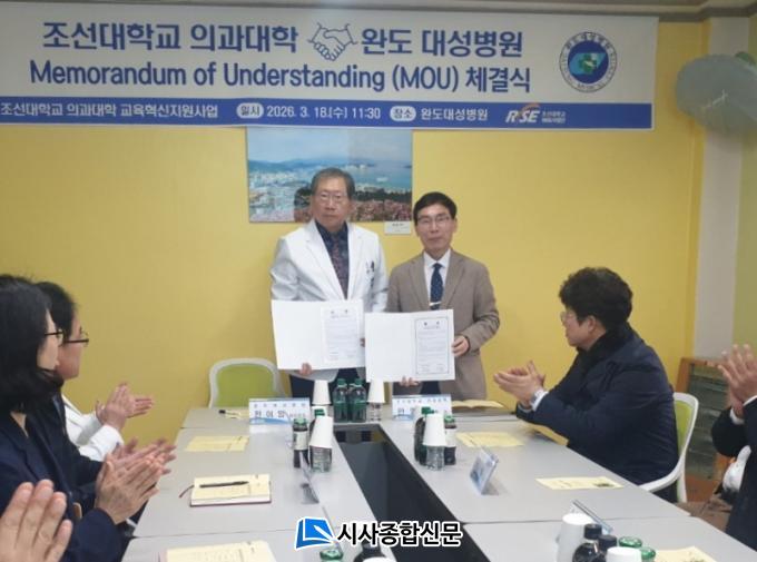 | Á¶¼±´ëÇб³ Àǰú´ëÇÐ(¿À¸¥ÂÊ ¾È¿µÁØ ÇÐÀå)-¿Ïµµ´ë¼ºº´¿ø(¿ÞÂÊ ÀüÀÌ¾ç ¿øÀå) MOU ü°á½Ä |