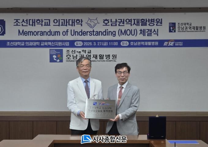 | Á¶¼±´ëÇб³ Àǰú´ëÇÐ(¿À¸¥ÂÊ ¾È¿µÁØ ÇÐÀå)-È£³²±Ç¿ªÀçȰº´¿ø(¿ÞÂÊ ¹®°æ·¡ ¿øÀå) MOU ü°á½Ä |