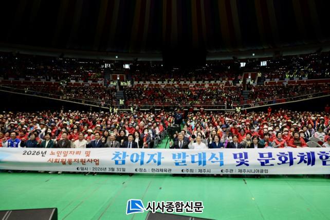 [½Ã»çÁ¾ÇսŹ® = °í¼º¹Î ±âÀÚ] ±è¿Ï±Ù Á¦ÁÖ½ÃÀåÀº Áö³ 31ÀÏ Á¦ÁֽôϾîŬ·´ÀÌ ÁÖ°üÇÑ ¡®³ëÀÎÀÏÀÚ¸® Âü¿©ÀÚ ¹ß´ë½Ä ¹× ¹®ÈüÇè Çà»ç¡¯¿¡ Âü¼®ÇØ ¾î¸£½ÅµéÀÇ ÈûÂù Ãâ¹ßÀ» ÀÀ¿øÇß´Ù.
