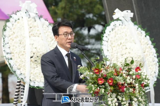 ¡®4¡¤3ÀÇ ¿ª»ç´Â Æòȸ¦ ǰ°í, ¿ª»çÀÇ ±â·ÏÀº ÀαÇÀ» ¹àÈ÷´Ù¡¯¸¦ ½½·Î°ÇÀ¸·Î ÇÑ À̳¯ Ãß³ä½Ä¿¡´Â »ýÁ¸Èñ»ýÀÚ¡¤À¯Á·, µµ¹Î°ú ±¹¹Î µî 2¸¸¿© ¸íÀÌ Âü¼®ÇØ Èñ»ýÀÚµéÀ» Ã߸ðÇß´Ù.